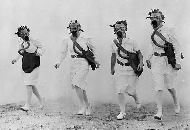 Es que ir con tacones y máscaras de gas en el campo de batalla es el último grito, pero lo mejor es la enfermera de la izquierda, como diciendo... ¡mamá, sácame de aquí! :evil: