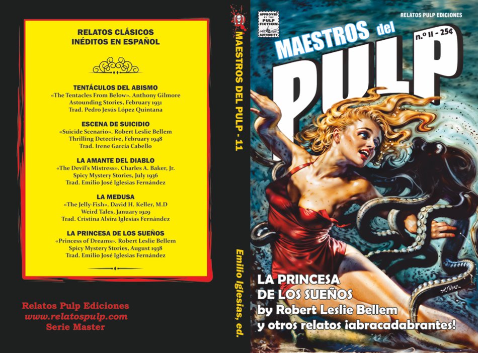 Presentamos el undécimo volumen de nuestra colección estrella "Maestros del Pulp" que, como ya sabréis, está dedicada a rescatar el olvido obras inéditas en español de la Era Dorada Pulp. En este número os ofrecemos una novela corta de ciencia ficción militar "Tentáculos del Abismo", el estreno de Nick Ransom, un detective de la misma escuela que Dan Turner, y nunca antes traducido a nuestro idioma, junto con otros relatos de horror y fantasía, algunos absolutamente delirantes como suele ser habitual en este tipo de publicaciones. En total, son cuatro relatos y una novela corta. Como siempre, nuestra edición incluye las ilustraciones originales y comentarios del editor.