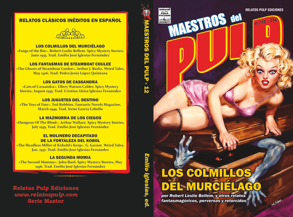 1. LOS COLMILLOS DEL MURCIÉLAGO. «Fangs of the Bat». Robert Leslie Bellem. Spicy Mystery Stories, June 1935. Trad. Emilio José Iglesias Fernández. Relato de vampiros, mad doctors, chicas despampanantes ligeritas de ropa y situaciones tan esperpénticas como absurdas, pero típicas del universo Bellem.