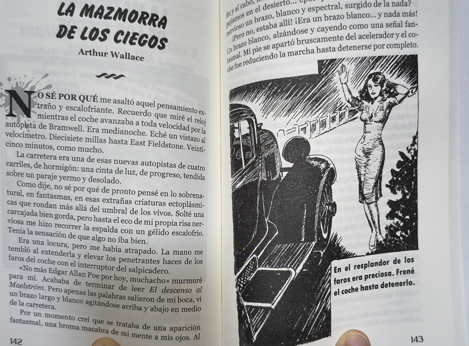 5. LA MAZMORRA DE LOS CIEGOS. «Dungeon Of The Blind». Arthur Wallace. Spicy Mystery Stories, July 1935. Trad. Emilio José Iglesias Fernández. Relato de mad doctors tan corto como intenso. Un conductor en medio de la noche, una bella muchacha desamparada, y un científico chiflado dispuesto a todo con tal de demostrar su disparatada teoría.