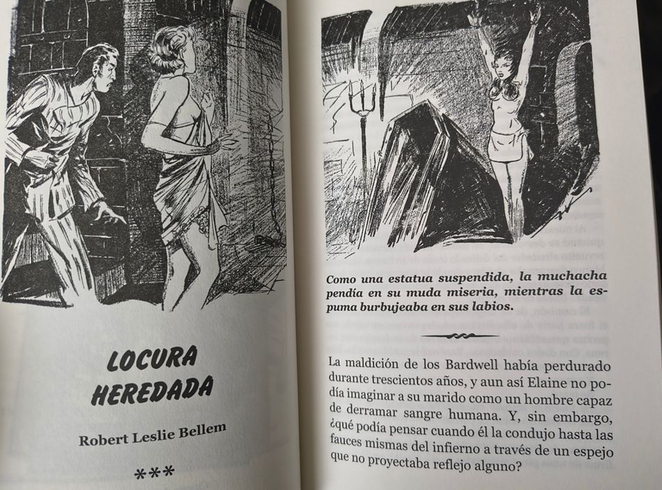 Por último, nuestro autor fetiche: Robert Leslie Bellem, que viene con dos relatos bajo el brazo. El primero, «Locura heredada», trata sobre una maldición familiar ―la de los Bardwell―, una de esas que solo pueden solucionarse con el acostumbrado sacrificio o derramamiento de sangre humana. Bueno, en este caso… algo más. Cabe señalar que este relato fue publicado en una revista Spicy, así que, además de sangre, el demonio también querrá algo de placer, ¿verdad?